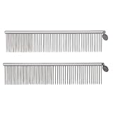 Geib , A PetEdge exclusive! A new line of top-quality grooming combs from Geib, the trusted leader in high quality grooming tools. European-style greyhound combs feature easy-grip rounded spines and long stainless steel teeth that penetrate through coats for great results. Ideal for fluffing, detangling, and removing dead hair. Each is blister-packed for retail. Material: Stainless steel pins, brass spine Each comb measures 7 1/2" with a 6 mm rounded spine Pin length: 1.375" Medium Coarse Comb has 37 medium teeth and 24 coarse teeth Face/Finishing Comb has 22 fine teeth and 38 coarse teeth ...