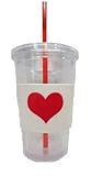 Clear Earth Reusable Cup With Reusable Straw, ECO Friendly, BPA Free, Holds 16 Oz, WHITE WITH HEART DESIGN