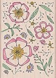 Here are some of the great features of Flowers and Leaf Background Wood Mounted Rubber Stamp (H4568)